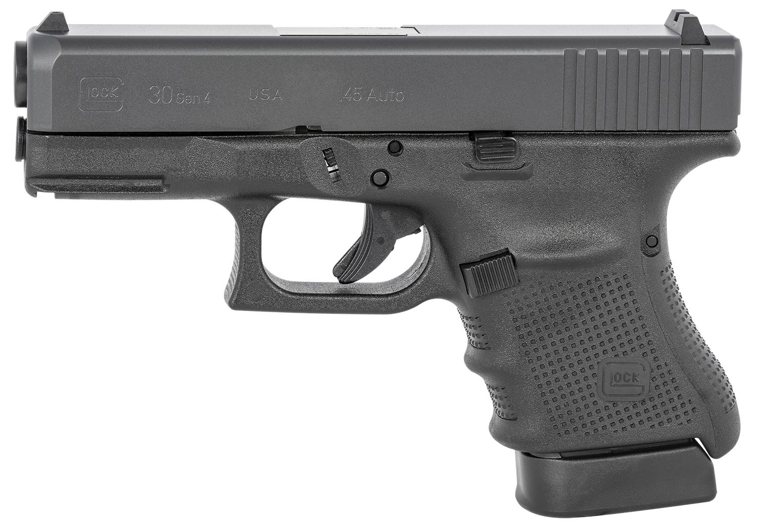 The Glock 30 Gen 4 in the legendary 45 ACP offers excellent out-of-the-box precision paired with the ballistic quality of this genuine big-bore caliber. Its design combines a shorter trigger reach with maximum capacity.