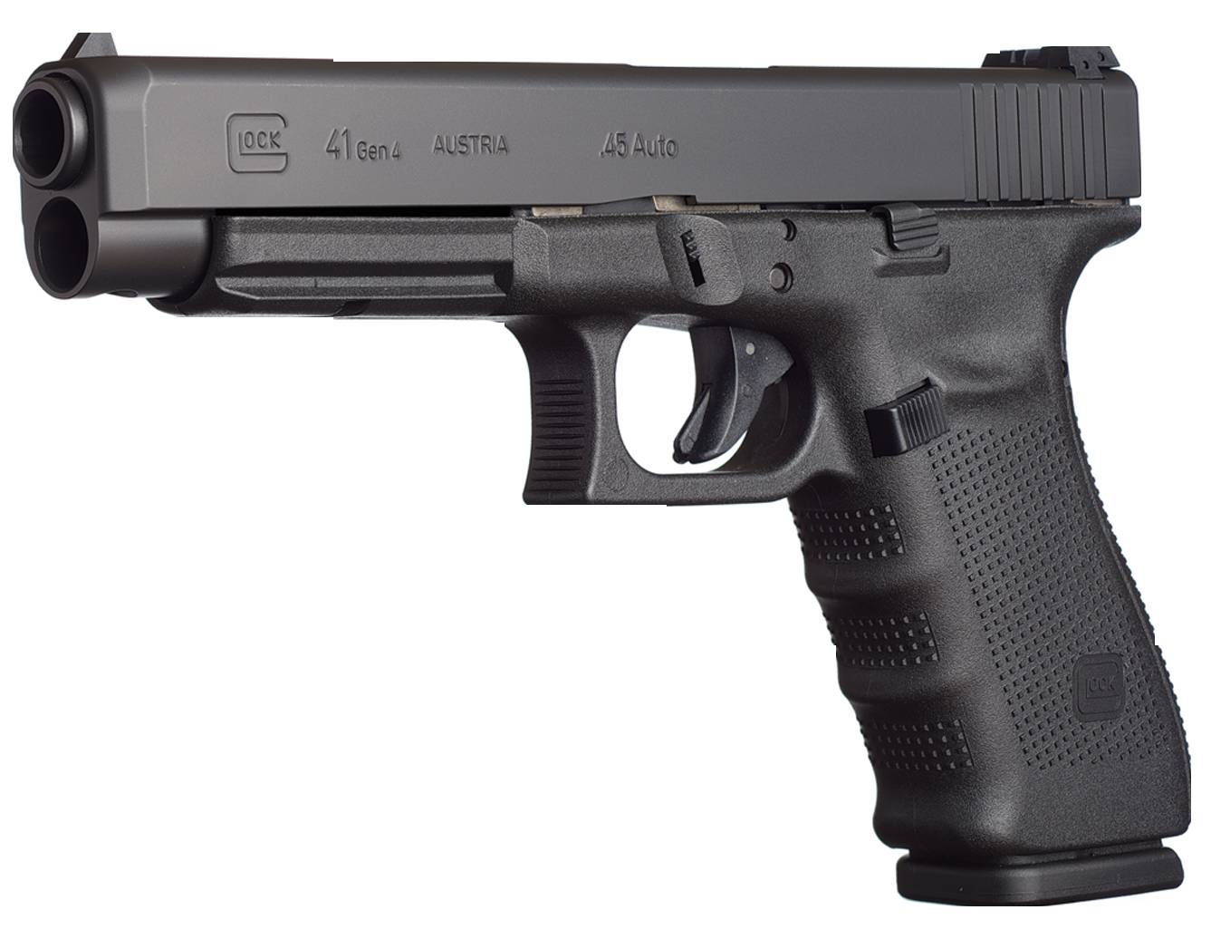 The Glock 41 Gen4 is a practical/tactical .45 Auto caliber pistol designed with the superior engineering of Glock to maximize sight radius while improving weight distribution and balance. The longer barrel and slide help to reduce muzzle flip and felt recoil while the longer sight radius provides better accuracy for competition or duty use.