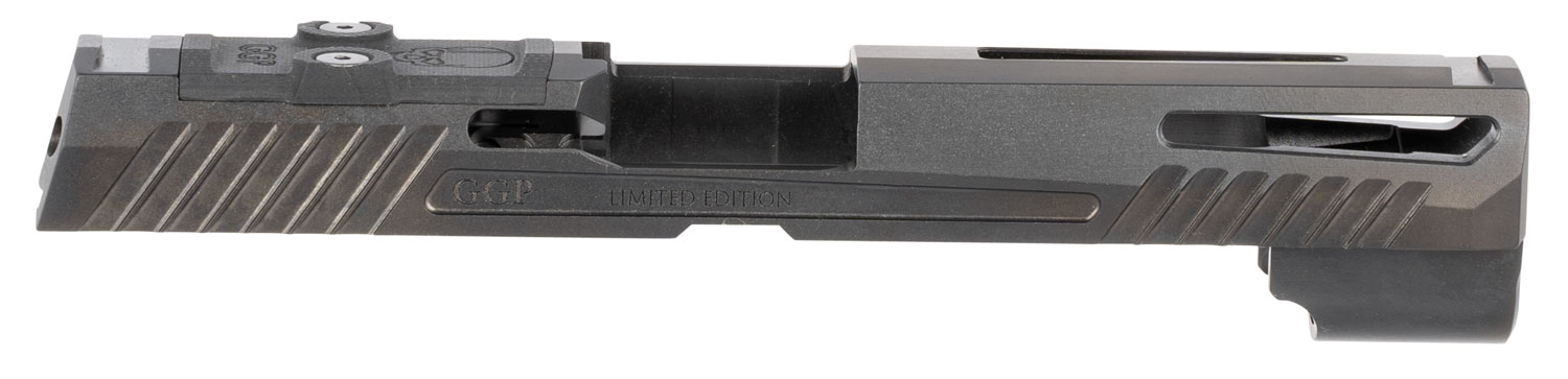 The GGP320 stripped slides offers enhanced aesthetic features, increased grip serrations and an improved coating without compromising function. It is constructed of 416 stainless steel with an optic cut compatible with Leupold DPP, Trijicon RMR, and Sig Romeo1. Included is a G10 cover plate. This version 1 features an aggressive serrations and window cuts. NOTE: X-FIVE BARRELS ARE NOT COMPATIBLE WITH GGP320 SLIDES DUE TO ITS PROFILE. PLEASE USE A STANDARD FULL SIZE 320 BARREL.