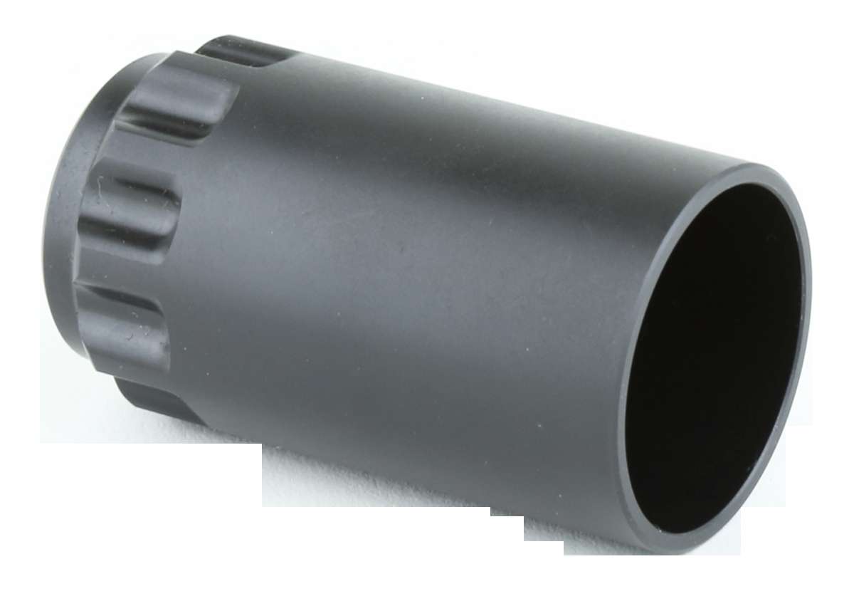 Especially effective on short barrels, the Taper Mount Blast Shield directs concussive force forward while the internal pocket allows the muzzle device to retain it's specific performance goals. Ultra strong 17-4PH stainless steel provides a robust material to withstand intense use and full auto fire without fear of failure. Fluted Geometry in the rear of the device provide geometry for attaching and detaching quickly. Melonite QPQ surface treatment provides an extremely hard, durable, and attractive finish. The Griffin Taper Mount Blast Shield is compatible with Griffin's line of Taper Mount muzzle devices of any caliber and model