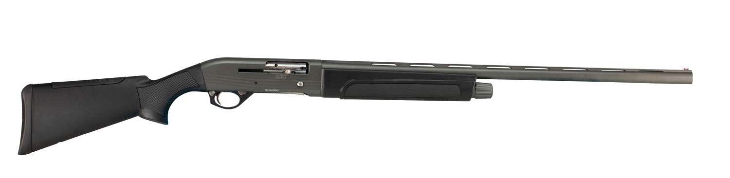 This firearm features a synthetic stock, tungsten gray metal finish, and a cross-bolt safety.
