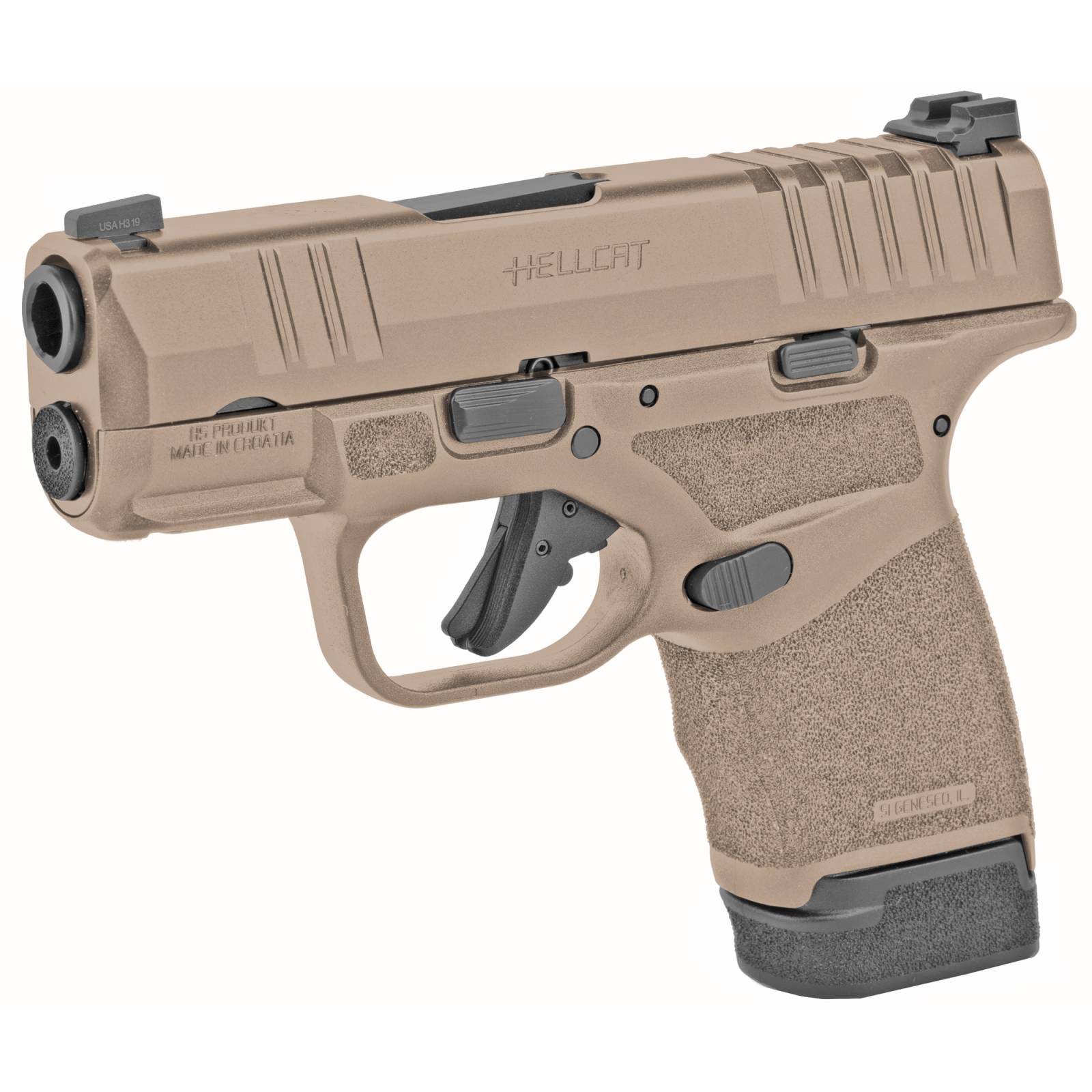 The Springfield Hellcat 9mm with a 3-inch barrel is your trusty companion for personal defense. This pistol comes equipped with 11rd and 13rd magazines, giving you two options for carrying additional ammo.