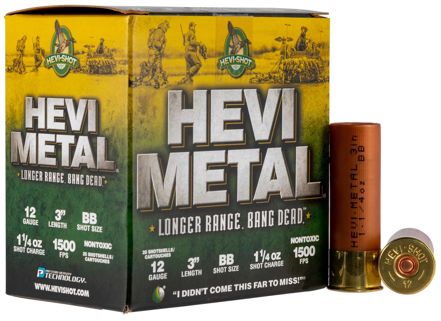 Hevi-Shot's Hevi-Metal Long Range allows Hunters to enjoy greater lethality at even longer range than the original HEVI-Metal shells. Its bismuth pellets are 16% denser, which packs smaller pellets that have greater killing power than traditional or even "super steel".