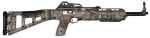 Hi-Point's 995TS 9mm carbine has an all-weather, polymer skeletonized stock with an internal recoil buffer, multiple Weaver-style rails, a sling, swivels, and scope base. It has a quick on/off thumb safety, grip-mounted clip release, last round lock open feature, and fully adjustable sights (post front, peep rear). The 995TS carbine has a 16.5" barrel for an OAL of 31". Hi-Point produces affordable, American-made firearms featuring 100% American parts and assembly. Hi-Point carbines are +P rated and accept all factory ammunition. This model features a Woodland camouflage finish on the stock with black metal finish and includes a 10-round magazine.
