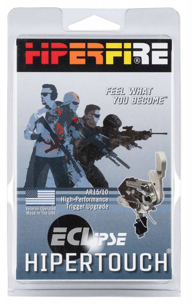 Made in the USA, the Hipertouch Eclipse trigger is a significant AR upgrade. This flat, single-stage trigger features Cam-Over Toggle Engine, Radical Sear Mechanics, Hipershoe Finger Pad Revolution, and positive reset.