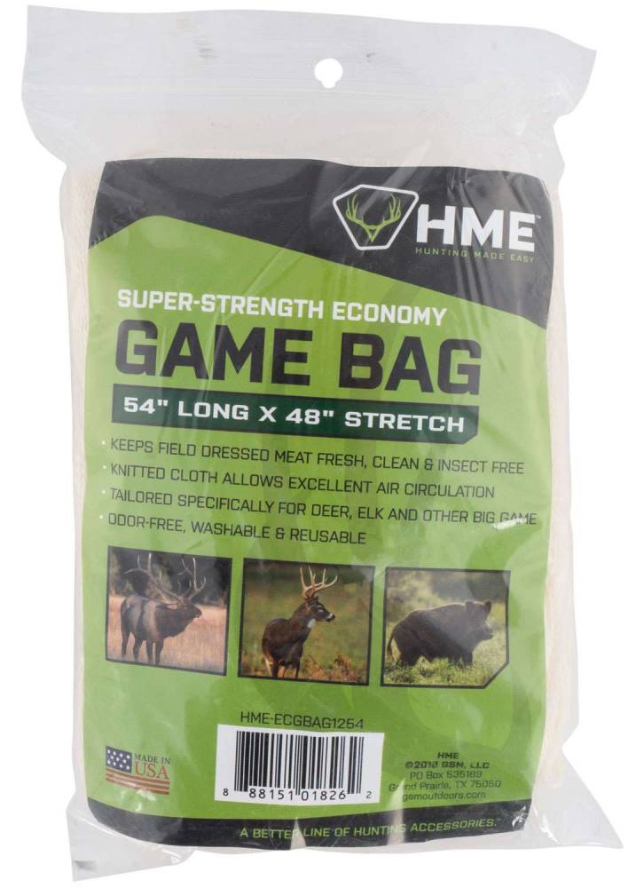 Heavy duty game bags keep field dressed meat fresh and insect free. The bags are odor-free, washable, and reusable.