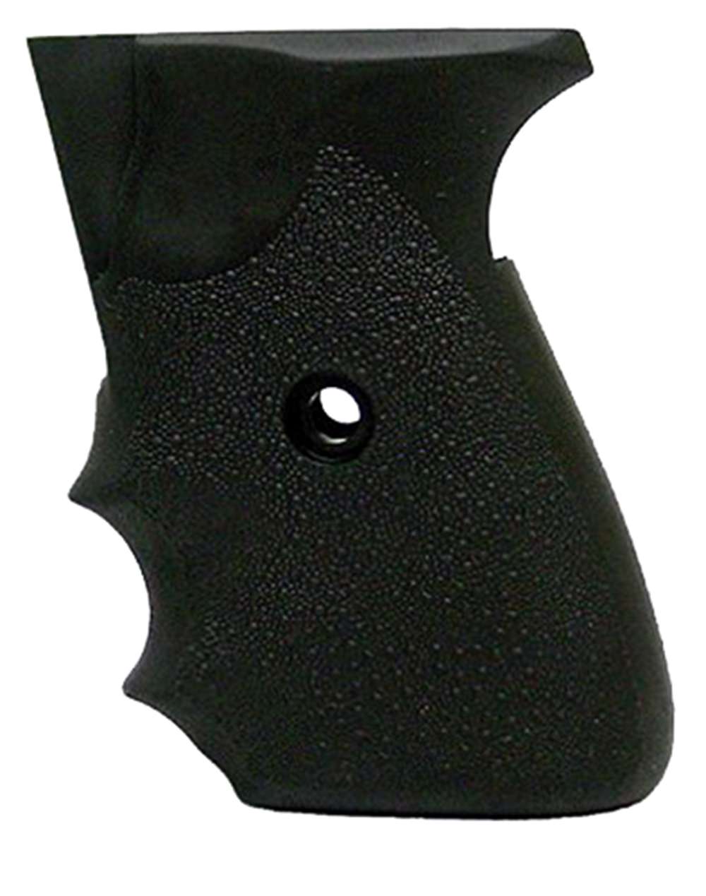 Hogue rubber grips are molded from durable synthetic rubber that is not spongy or tacky, yet provides a soft recoil absorbing feel without affecting accuracy. The flexibility of the materials and molding process produces rubber grips with features that out perform all other makes. It is molded with a reinforcing insert directly engaging with the firearm frame for a rock-solid grip-to-frame fit. The Cobblestone texture provides an efficient non-slip, non-irritating stippling pattern.