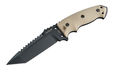 Hogue EX-F01, Fixed Blade Knife, 5.5" Tanto Blade with Broad Rear Saw Teeth, Black Cerakote Finish, A2 Tool Steel, G10 Flat Dark Earth Handle, Includes Retention Sheath 35127