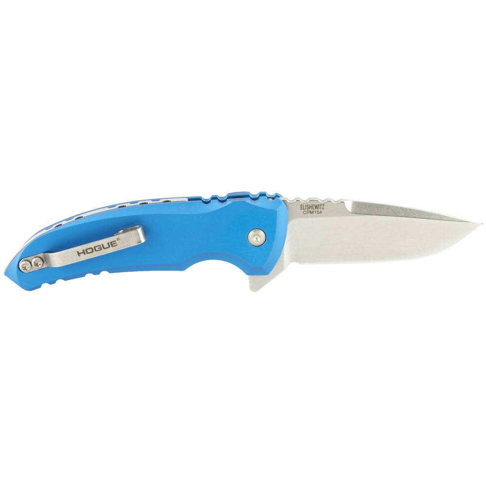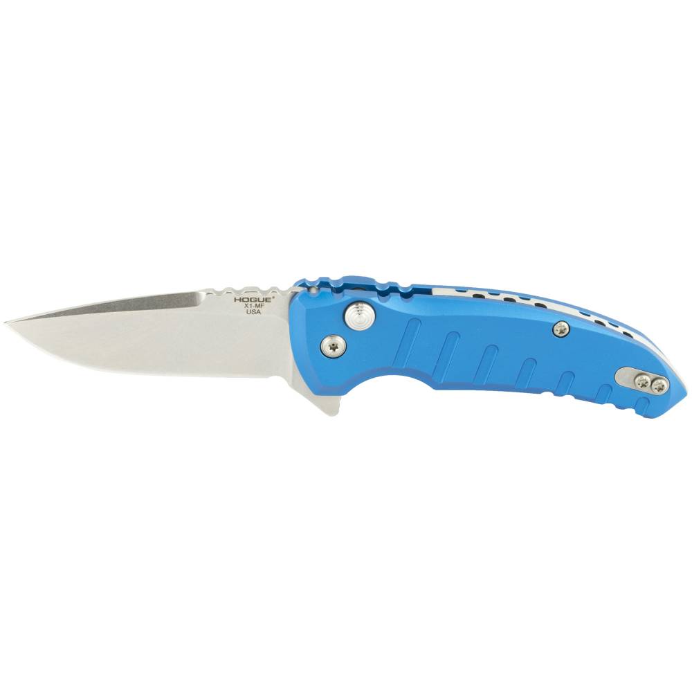 Hogue X1-Microflip, Folding Knife, 2.75", Drop Point, Tumbled Finish, Blue/Aluminum Frame, Plain Edge 24178-EXLRSR