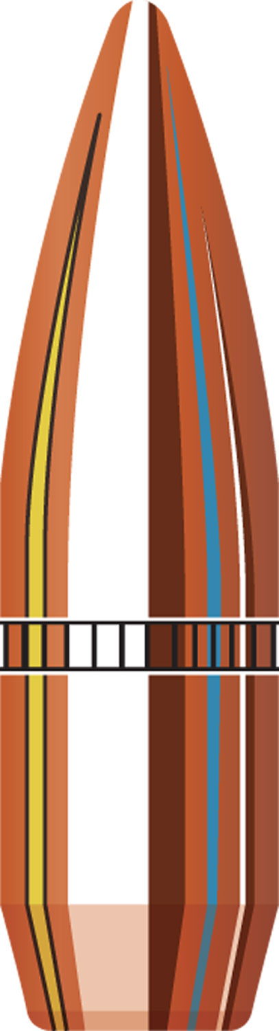 Hornady's Traditional Rifle bullets are built with a rugged AMP bullet jacket (Advanced Manufacturing Process) that clearly delivers better performance. The thin-plated full metal jacket is easily distorted and often breaks or separates when the bullet impacts the target. The AMP bullet jacket features virtually zero tolerance for concentrically and near-zero wall thickness variation, punching through targets without deforming or breaking.