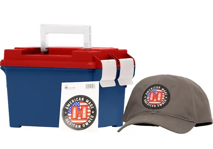 Hornady American Gunner Training, USA Ammo Can Combo, 9MM, 115 Grain, (1) 50 Round Box of 115 Grain American Gunner XTP & (4) 50 Round Box of 115 Grain FMJ, 250 Rounds Per Ammo Can, Includes Red. White & Blue Ammo Can, Hat and Sticker 90254