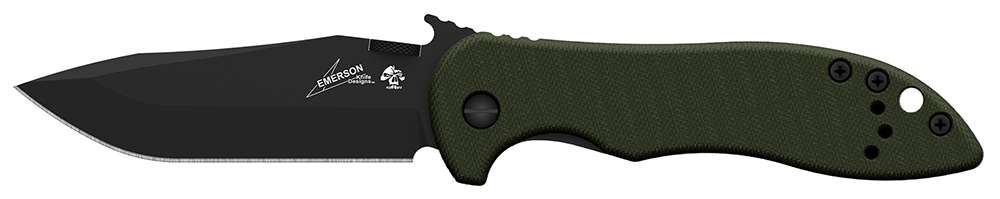 The CQC-5K features a modified clip-point blade for versatile cutting capability. Black-oxide coating protects the blade and makes it non-reflective, too. G-10 handles in olive drab provide secure grip and a locking liner means safe and solid blade lock up. The CQC-5K is a manual opener using either the thumb disk or the patented Emerson "wave shaped feature." This opening feature enables the knife to be opened as it is removed from the pocket. A small wave-shaped tab on the top of the blade is built to catch on the pocket seam, opening the knife as it comes out of the pocket. This instant-open feature is a favorite among military, rescue and law enforcement knife users. The pocket clip is reversible for left or right handed carry.
