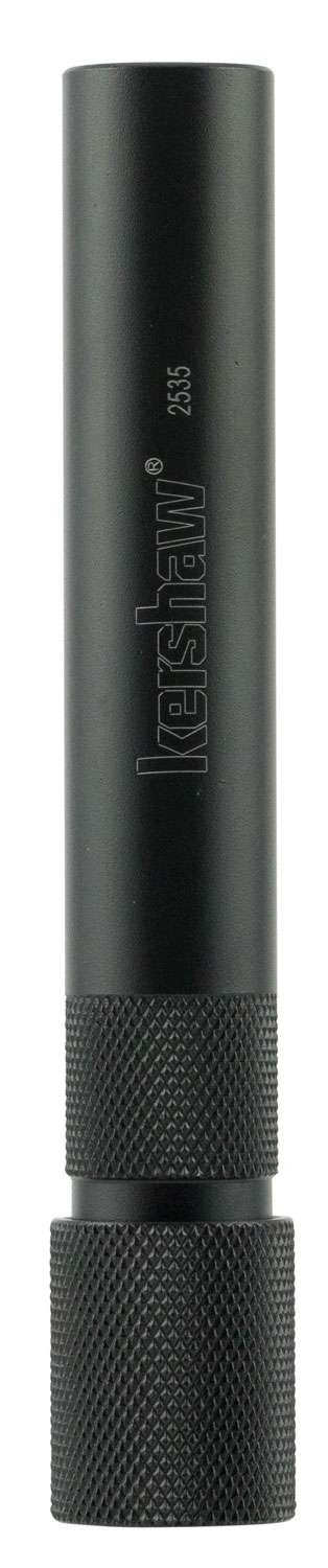 The Ultra-Tek Blade Sharpener is the convenient way to keep your knife sharp. The Ultra-Tek is a compact sharpening steel that lets you quickly and easily touch up the edge on your Kershaw anywhere, anytime. The Ultra-Tek handle is made of 6061-T6 anodized aircraft aluminum. Stored inside the handle is a 600-grit, diamond-coated oval shaft. This is the perfect grit for restoring an edge that is in generally decent shape but is just dull. Simply unscrew the shaft from the handle interior, turn it around, and screw it on to the other end of the handle. The Ultra-Tek requires no water or oil. It's lightweight and easy to use.