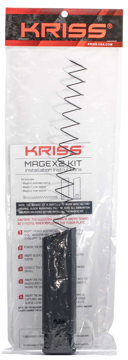 The KRISS Mag-Ex Kit 2 is the capacity extending base plate for your factory standard Glock magazines. The kit is made up of the extended baseplate, outer sleeve and extended spring, constructed of durable and lightweight reinforced composites. Combining the Mag-Ex Kit 2 with the factory standard Glock magazine body and follower is a perfect match of reliable feeding, toughness and aesthetics for the KRISS Vector.