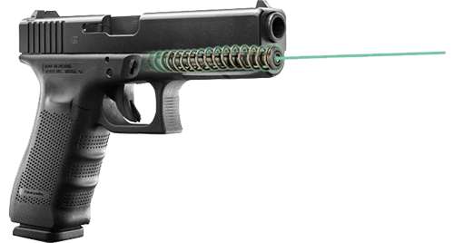 LaserMax Guide Rod Lasers meet or exceeds both Mil-Spec and Homeland Security durability test standards (drop tests, blowing sand, temperature and humidity extremes, salt water, fog, deep water immersion, 20,000+ rounds live fire). It has an on/off switch on the takedown lever. No gunsmithing required to install. These models fit Glock pistols and have a red or a green laser.