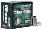 Liberty Ammunition's Civil Defense in .40 S&W delivers a high performance, lead-free 60-grain projectile at velocities greater than 2000 FPS and more than 500 FPE kinetic energy. Increased fragmentation generates significant results in terminal effects, and reduced felt recoil allows for better follow-up shots. At 25 meters, Civil Defense achieves less than 2 inches dispersion with 12 inches of penetration.