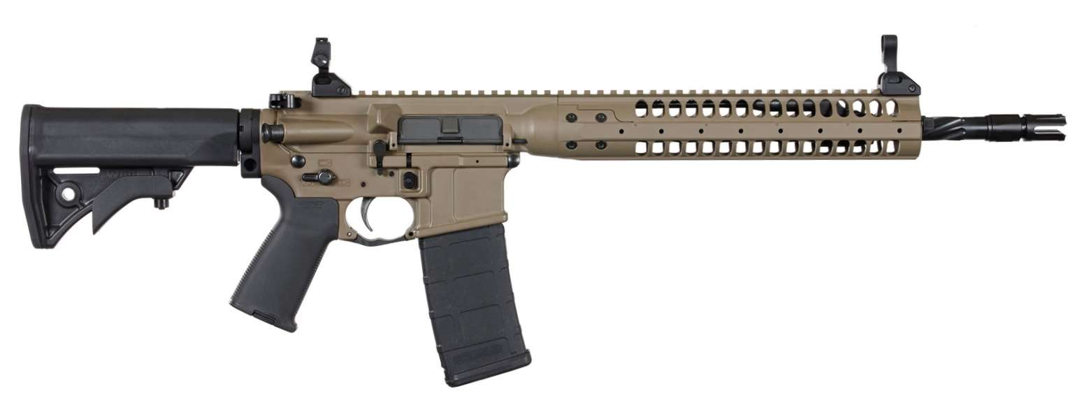 LWRC's IC-SPR variant is constructed using the highest quality materials. The SPR is built on a patented self-regulating short-stroke gas piston system, machined from materials that belong to the super alloy family of steel alloys most often used in aerospace. Its gas-piston system can be accessed quickly by loosening two thumb screws. Other features included a one-piece Monoforge upper design that has an integrated rail-base that is stronger and lighter. The 12 inch user configurable rail system with individual rail sections allow the shooter to place accessory rails where they are needed while maintaining its low profile ergonomic fit and function. Its dual control fully ambidextrous lower receiver includes bolt catch and release, magazine release and fire control access from both sides of the IC-SPR. Included is an manufactured- NiCorr treated cold hammer forged spiral fluted barrel that has increased surface area which reduces heat speeds up cooling. The Nickel-boron coated bolt carrier delivers unparalleled wear resistance, corrosion resistance and permanent lubricity. The LWRCI IC-SPR comes complete with, Skirmish back up iron sights, ambidextrous charging handle, adjustable compact stock, and a Magpul MOE+ Grip and LWRCI High Efficiency 4-Prong Flash Hider.