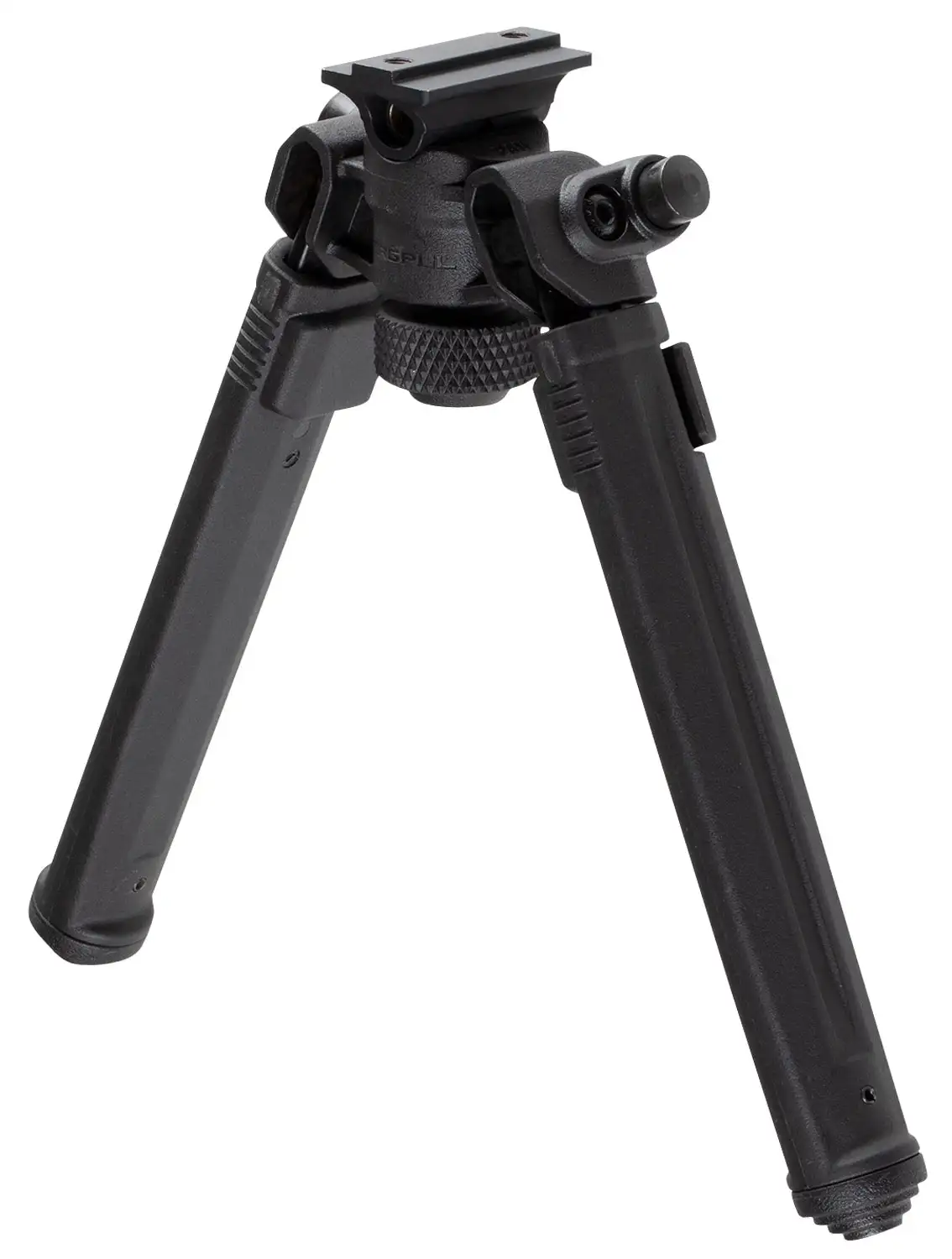 The Magpul bipod for A.R.M.S.17S Style is constructed of Mil-spec hard anodized 6061 T-6 aluminum, stainless steel internals, and injection-molded reinforced polymer. It is designed to be used in conjunction with an appropriate 17S-style mounting device that is purchased separately and is used for proper mounting to your weapon system of choice. Deploying and adjusting it is quick and easy. Spring-tensioned legs stow neatly forward and snap down and lock into place with one hand. The legs extend a full four inches, from 6.3" to 10.3". It can tilt up to 50 degrees and pan up to 40 degrees. Additionally, the Magpul Bipod has the exclusive ability to lock pan at 0 degrees while maintaining full tilt functionality. A soft rubber bipod locking knob cap is attached to the locking knob gives users a steady, non-marring forward rest while the bipod is folded. Should users choose to change feet, the Magpul Bipods legs accept most Atlas pattern bipod replaceable feet, except for the Atlas 5-H style.
