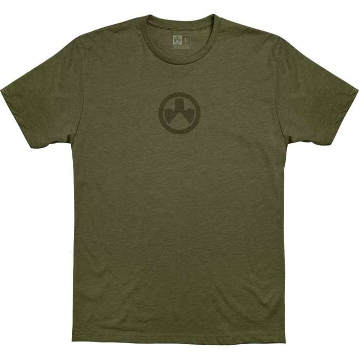 Made in the USA, the Magpul Icon Logo CVC t-shirt is made of 100% cotton with a crew neck and set-in sleeves. It features a tag-less interior neck label, shoulder to shoulder neck tape, and double-needle stitching.