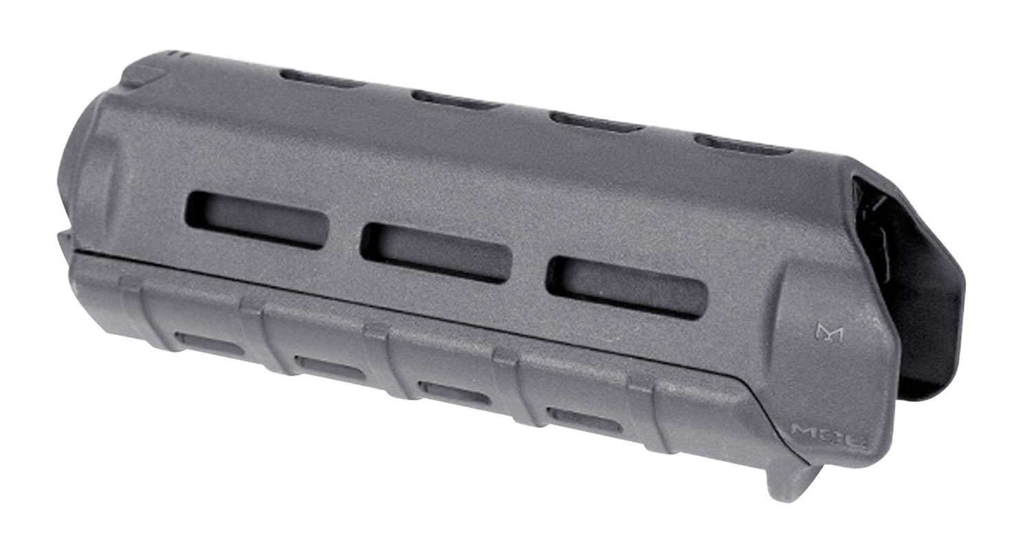 Made in the USA, the Magpul MOE M-LOK Hand Guard (Magpul Original Equipment) for AR15/M4 firearms with carbine-length gas systems combines the light weight of a standard hand guard with modular flexibility. M-LOK slots at the two, six and ten o'clock positions allow the attachment of optional 1913 Picatinny rail sections and other M-LOK accessories for the direct mounting of tactical lights, slings, grips, etc. Reinforced, heat-resistant polymer construction provides operational durability, integral riveted aluminum heat shield. Front extensions and lower lip provides additional operator protection from hot front sight assembly. Easy to install utilizing existing delta ring and round or triangular front hand guard retaining cap. Relieved area at the top rear accommodates many overhanging optic mounts.