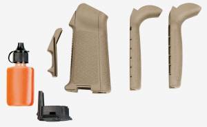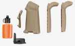 Made in the USA, the MIAD (Mission Adaptable) GEN 1.1 Grip is a drop-in replacement for the standard AR15/AR10 grip, now available in two dedicated configurations to fit most receivers. It is designed to improve ergonomics with interchangeable front and rear straps for personalized hand fit, an aggressive texture for positive weapon control, and is compatible with all Magpul grip cores to adapt to various storage needs.