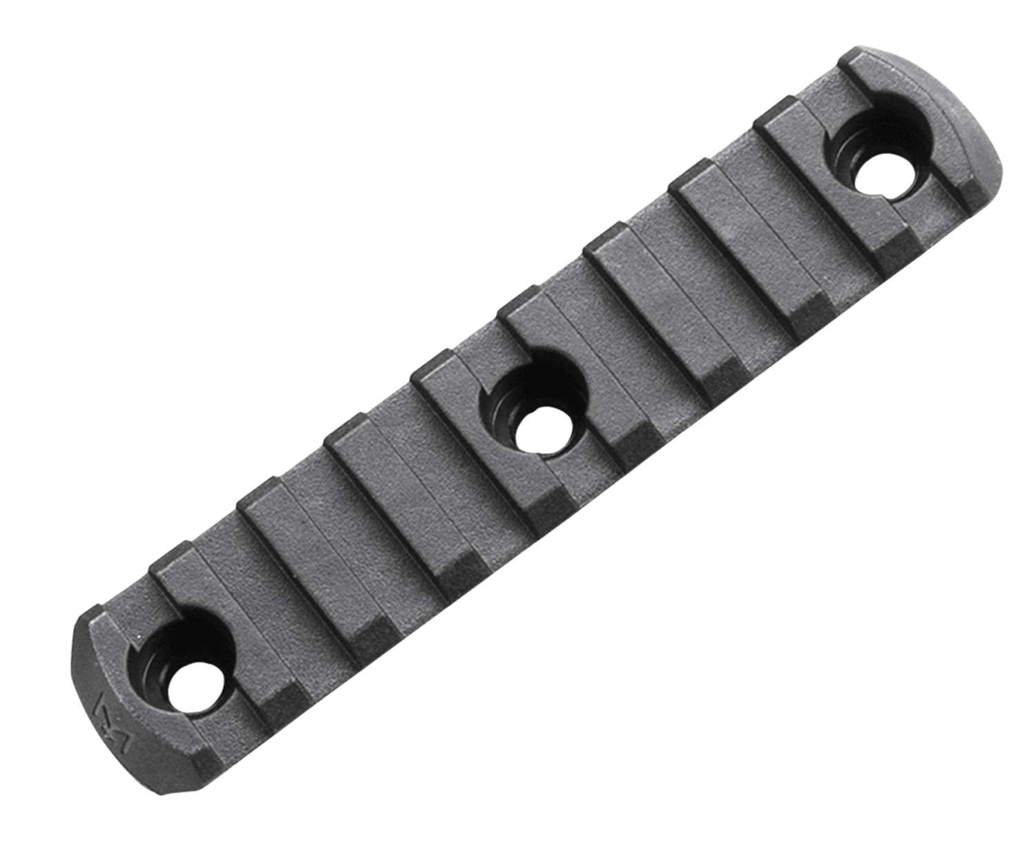 Made in the USA and designed for use with all M-LOK compatible Hand Guards and Forends, M-LOK Polymer Rail Sections provide a cost-effective method of attaching various 1913 Picatinny spec rail-mounted accessories such as lights, vertical grips, etc. Injection molded from a proprietary reinforced composite for enhanced strength and durability while remaining lightweight, Rail Sections also feature beveled ends to reduce snagging and eliminate sharp corners and edges. All hardware necessary for attachment directly to M-LOK Slots on either aluminum or polymer handguards and forends is included. 9 Slots, a max overall length of 4.1 in.