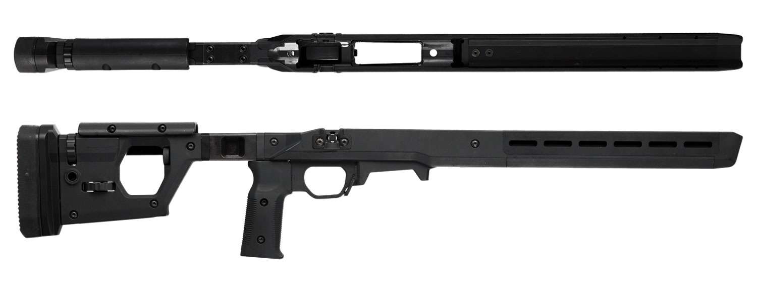 The Magpul Pro 700 - Fixed Stock rifle chassis is an uncompromising, full-featured precision rifle chassis for short action Remington 700 actions and other Remington 700 footprint actions. The Pro 700 combines innovative engineering, precision machining, MILSPEC quality finishes, and an extensive list of purposeful design features with complete adjustability to provide demanding end users with the most comprehensive available precision rifle platform solution for true out of the box performance. Based on a full billet aluminum skeleton and clad in Magpul polymer for environmental comfort, noise mitigation, and ergonomics, the Pro 700 is also fully ambidextrous. Capable of fitting both right and left handed actions with the simple swap of a bolt retainer plate and QD sling swivel plate, also with a reversible cheek riser, lefties haven't been left out.