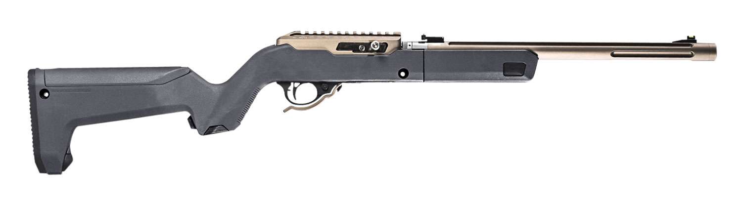 The Magpul X-22 Backpacker stock takes the function of the full-size Hunter X-22 Takedown and pares it down for ease of storage and transportation. Made for the Ruger 10/22 Takedown rifle, the X-22 Backpacker offers a minimalist solution for the hunter or outdoorsman who wants to transport their rifle in an efficient, convenient package without compromising shooting performance. Constructed of a durable advanced polymer, the X-22 Backpacker features an ergonomic hand guard, optional QD sling mounting capability, integrated storage compartment in the grip, a hinged storage compartment in the stock capable of storing up to 3 spare 10rd magazines, a MOE SL non-slip rubber butt pad, and a unique locking interface to attach the barrel assembly to the receiver when being transported. Fits all Ruger 10/22 Takedown rifles as well as the Tactical Solutions SBX barrel.