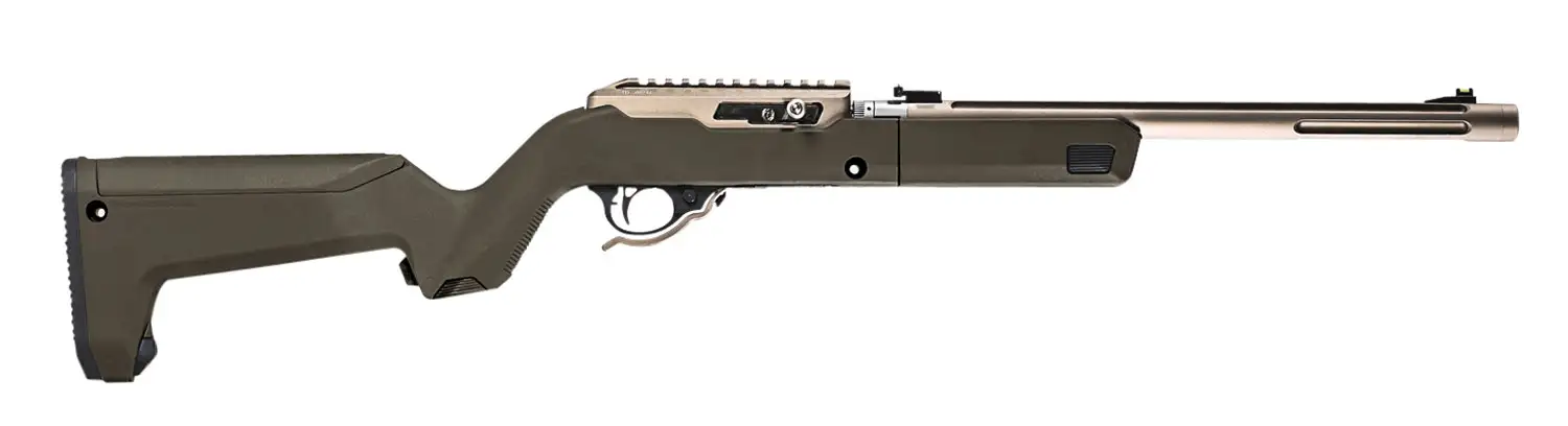 The Magpul X-22 Backpacker stock takes the function of the full-size Hunter X-22 Takedown and pares it down for ease of storage and transportation. Made for the Ruger 10/22 Takedown rifle, the X-22 Backpacker offers a minimalist solution for the hunter or outdoorsman who wants to transport their rifle in an efficient, convenient package without compromising shooting performance. Constructed of a durable advanced polymer, the X-22 Backpacker features an ergonomic hand guard, optional QD sling mounting capability, integrated storage compartment in the grip, a hinged storage compartment in the stock capable of storing up to 3 spare 10rd magazines, a MOE SL non-slip rubber butt pad, and a unique locking interface to attach the barrel assembly to the receiver when being transported. Fits all Ruger 10/22 Takedown rifles as well as the Tactical Solutions SBX barrel.