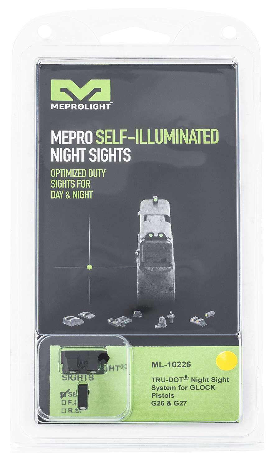 Meprolight Tru-Dot, Sight, Fits Glock 26, 27, Green/Yellow 0102263201
