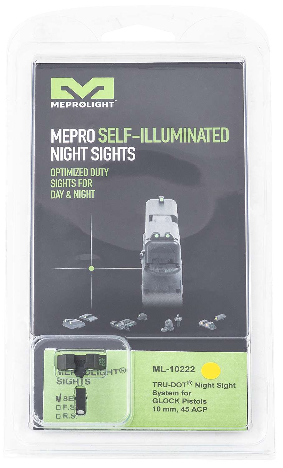Meprolight Tru-Dot, Sight, Fits Glock 20,21,29,30, Green/Yellow 0102223201