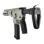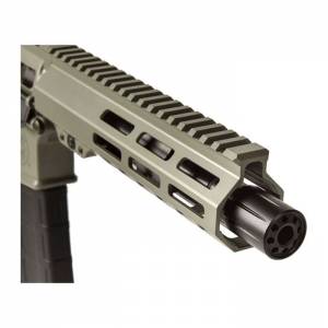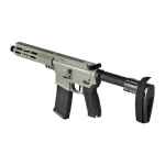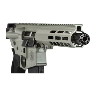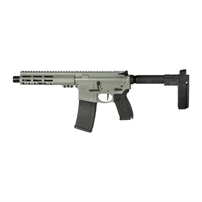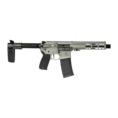 The M&P15 Pistol features a Hodge rail free-float handguard with M-LOK slots, fixed arm brace, four interchangeable palmswell grip inserts, flat face trigger, and a full length Picatinny-style rail, one-point QD sling swivel attachment point and a threaded barrel with a blast diverter.