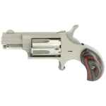 North American Arms Mini Revolver, Single Action, 22LR, 1.125" Barrel, Steel Frame, Stainless Finish, Red/Black Wood Grips, Fixed Sights, 5Rd NAA-22LRR