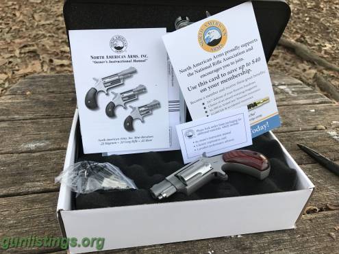 North American Arms Mini Revolver, Single Action, 22WMR, 1.625" Barrel, Steel Frame, Stainless Finish, Wood Grips, Fixed Sights, 5Rd NAA-22M-GRB