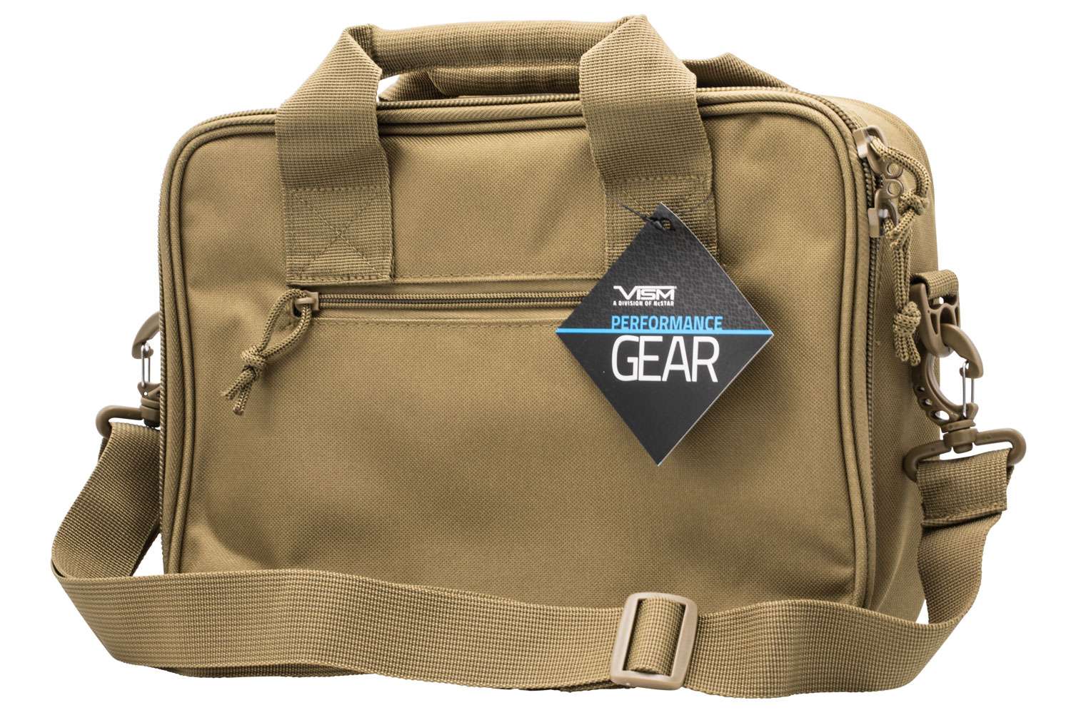 The Double Pistol Range Bags main pistol compartment can fit two standard full framed semi-auto pistols. The compartment floor is lined with loop fasteners and comes with four hook & loop straps to secure the pistols in place. There are two large flaps that close over the pistols to help secure them in place and to protect them from being scratched. The 9" long magazine pouches run nearly the full width of the bag with hook & loop flaps on both ends. This allows you to use sub-compact, double stack standard capacity magazines, and even 30+ extended magazines. The mag pouches can hold up to 10 standard capacity double stack magazines. There are also extra loop fasteners on the mag pouches for name tape or moral patches. Elastic loops for holding additional mags, shooting glasses, etc. Two slot pockets to hold a pen/marker or tools. Large heavy duty zippers on the main compartment with lockable metal zipper pulls (padlock not included). Heavy Duty padded carry handles and an adjustable shoulder strap with quick connects are included. There is also an external zippered compartment to hold paperwork, your car keys, etc. On the back side there is a 5" X 3" loop fastener patch to attach a name tape or moral patches.