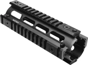 NcStar AR-15 Quad Rail system is designed to replace your standard AR-15 hand-guards installing in minutes with no gun smithing or modifications required. The removable weaver style rails are customizable so you can attach forward grips, flashlights, lasers, or any other type of rail mounted accessories. It is constructed of hard anodized aluminum to prevent corrosion for lasting durability.This model is 6.7" long and has a black anodized finish.