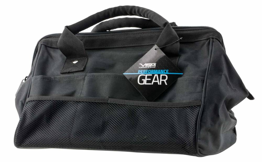 Constructed of tough PVC material with a large heavy duty zipper. Exterior and interior compartments for extra storage space. Durable carry handles.