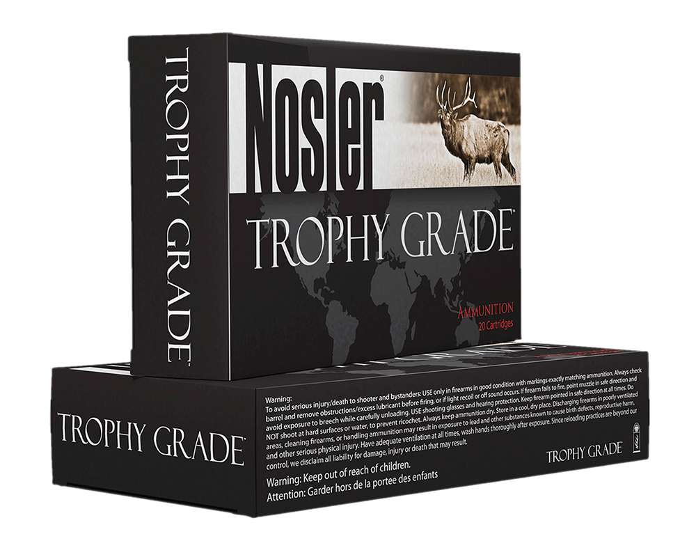 Manufactured to Noslers strict quality standards, Trophy Grade ammunition uses Nosler Custom brass and Nosler bullets to attain optimum performance, no matter where your hunting trip takes you. Whether you want your ammunition loaded with AccuBond, Partition Ballistic Tip or E-Tip, Nosler Trophy Grade Ammunition will have the right load for the right game.