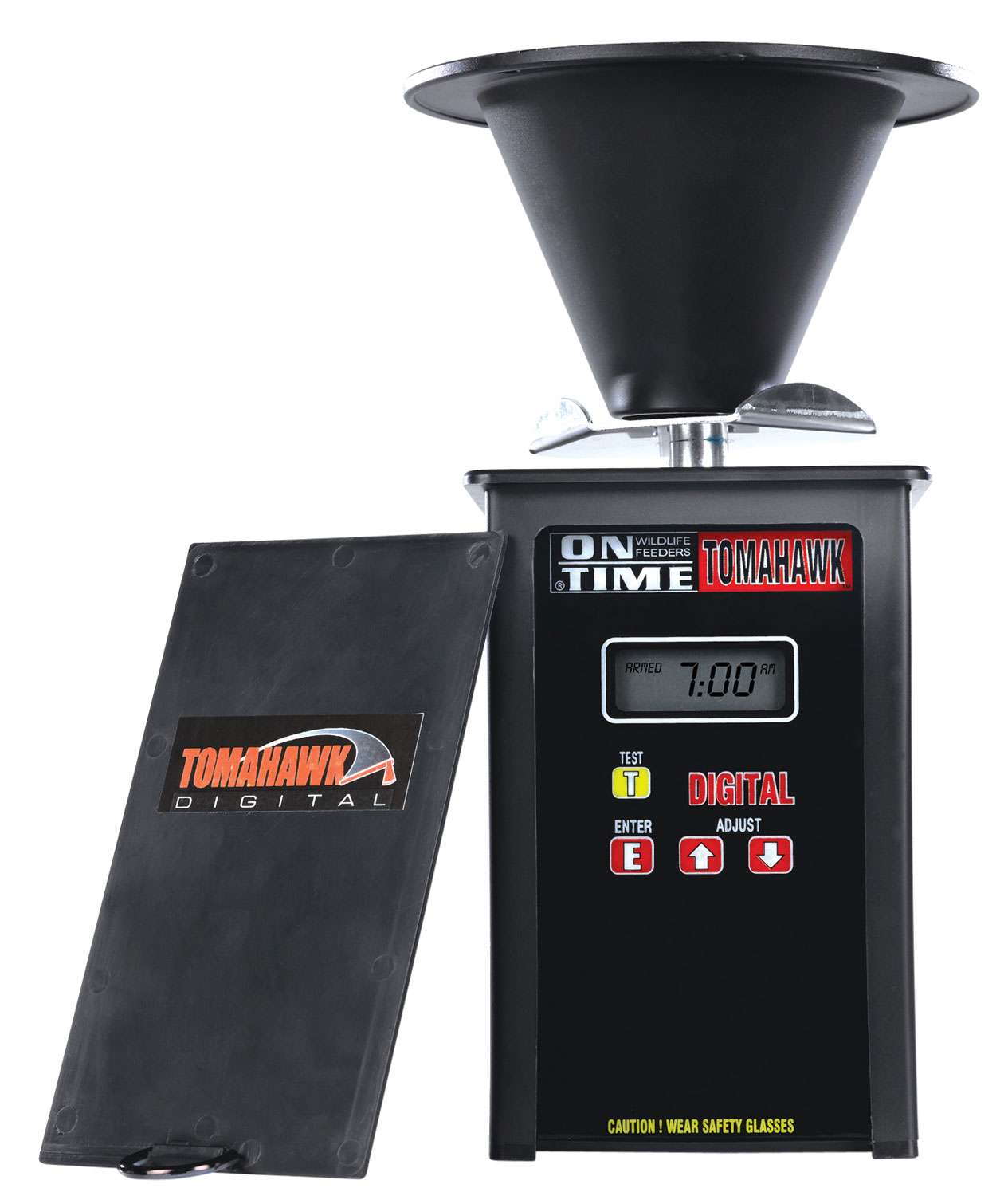 On Time's Tomahawk VL Timer utilizes robotic constructed electronics for reliability and ease of use. This unit can be easily programmed for up to 4 feedings a day with adjustable feed times up to 20 seconds. Programming is made easy by 3 on screen prompts, including an on board test feature. Its high-impact composite construction is pre-wired for solar panel and remote control. The universal mounting fits most hoppers, and it is ready to be used with 6 or 12 volt batteries (not included).