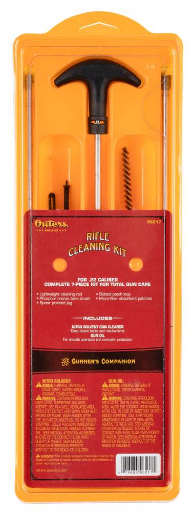 Easy-to-use Aluminum Rod Shotgun kit includes lightweight cleaning rod; phosphor bronze bore brush; slotted patch loop; rod adaptor; micro-fiber absorbent patches; Nitro Solvent Gun Cleaner 2oz and Gun Oil 2oz.