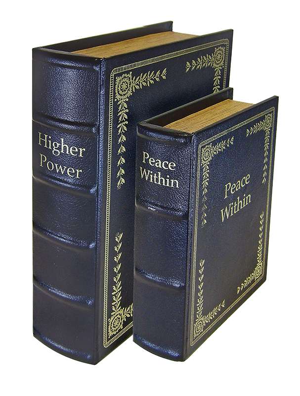 There's no need to cut up a book to hide valuable firearms or jewelry. This set contains false two books, appropriately titled "Higher Power" and "Peace Within," which provide a convenient hiding spot, while blending right in with other hardbound books on the shelf. It is sold as a nested set. Large book measures 6.75" x 9" x 2.75" internally for full size handgun, and the smaller book measures 6.75" x 4.75" x 1.75" for medium or small frame pistols.