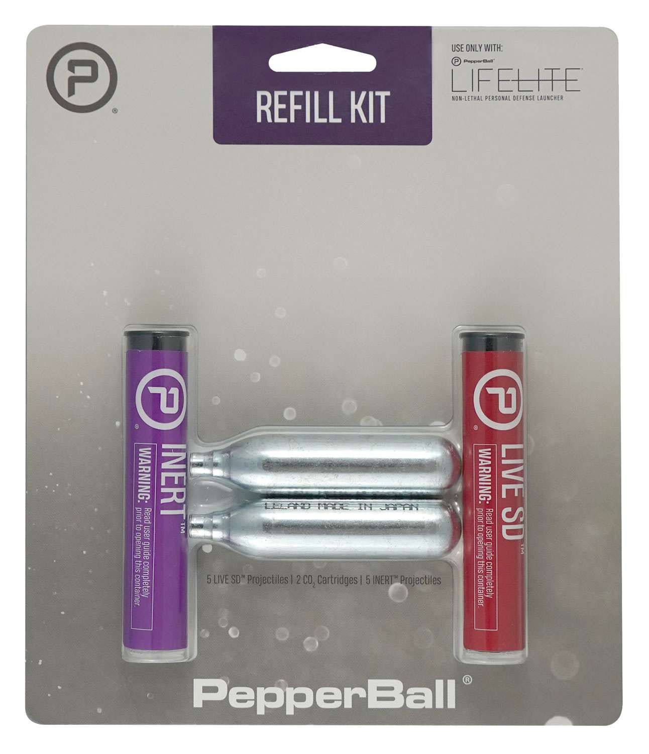 A complete kit to refill the LifeLite Launcher. This kit features 5 inert practice projectiles, [5] Live SD PepperBall Projectiles, and 2 CO2 Cartridges.