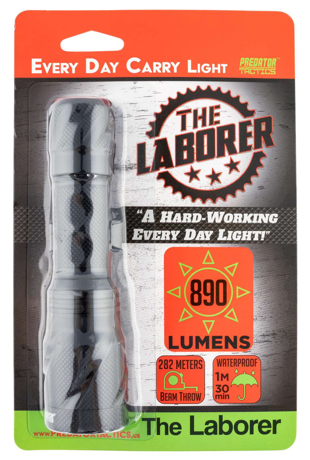 The Laborer Flashlight is a small, compact high lumen every day carry light that can easily be carried on hunting trips. It produces a mind-blowing 890 lumens of bright white light. It is built to stand up against the toughest work environments to give you peace of mind with its ability to work as hard as you do. The Laborer Flashlight can be powered by a single 18-650 rechargeable battery or a pair of cr123 batteries.