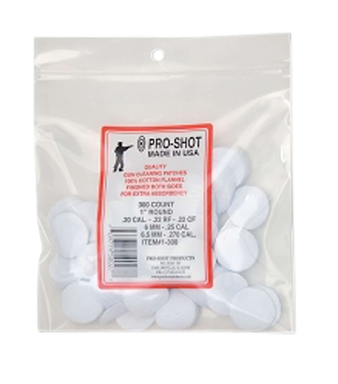 The cotton patches from Pro-shot are made from 100 percent cotton flannel fabric for purposes of absorbing foreign matter and residue. Each 1 inch cotton patch is made with a high thread count to pick up all of the remaining residue, but not tamper with the barrel's rifling.