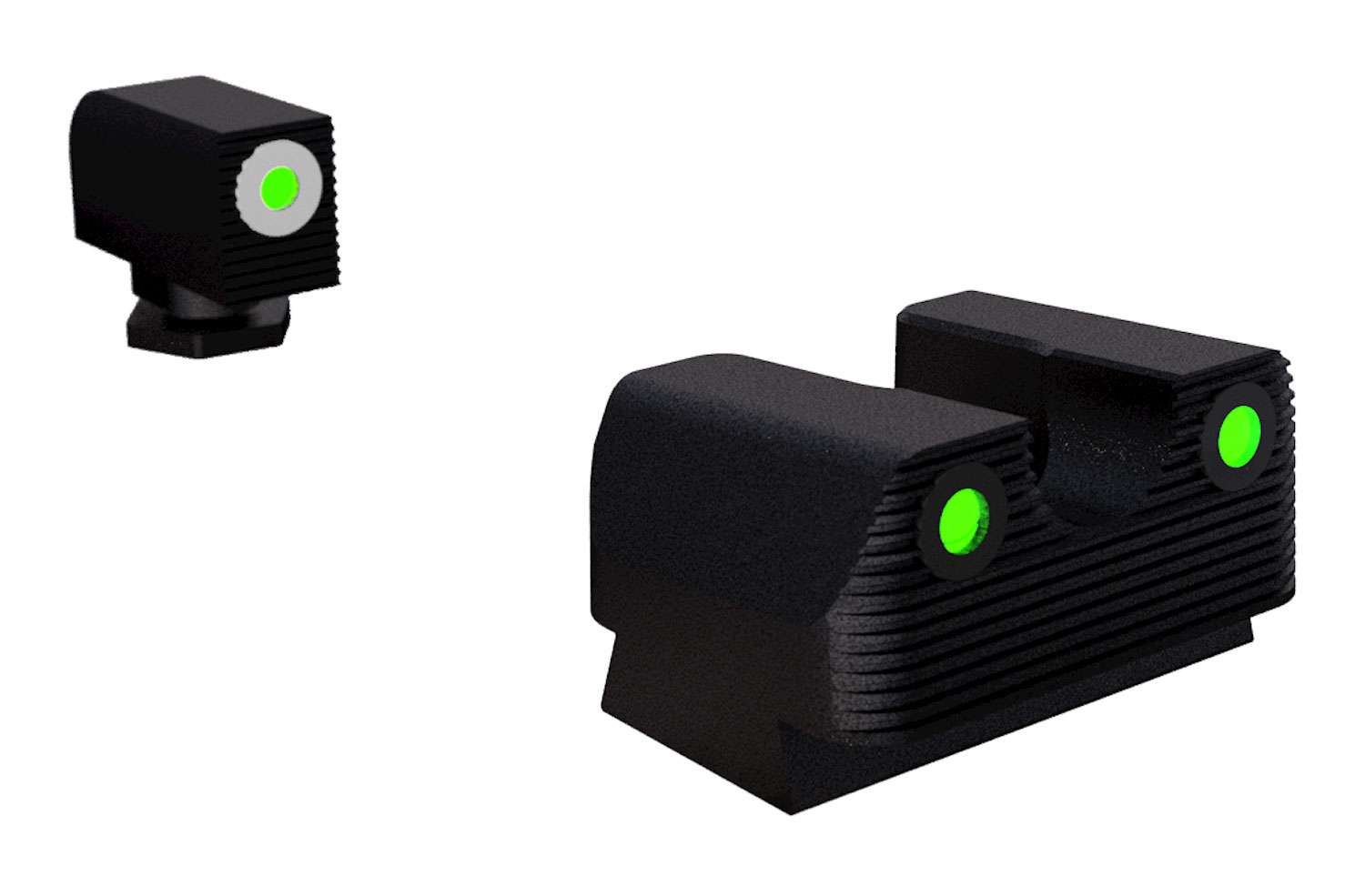 To consider a gun to be great, it must be reliable day and night. Providing a consistent green glow, our tritium night sights ensure accuracy in low light and even complete darkness. In daylight, a large white dot and rounded notch design increase speed and accuracy. It is CNC-machined stainless steel construction, quick and accurate U-notch snag resistant design, fits most standard holsters.