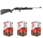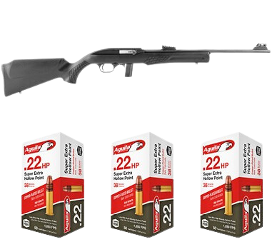 The Rossi RS22 Bundle is ideal for outdoor enthusiasts looking for convenience at a great price. This bundle includes a semi-automatic Rossi .22LR 18in Barrel 10+1 Round Capacity rifle and three boxes of Aguila Super Extra High Velocity 22LR 38gr. Hollow Point 50rd/Bx