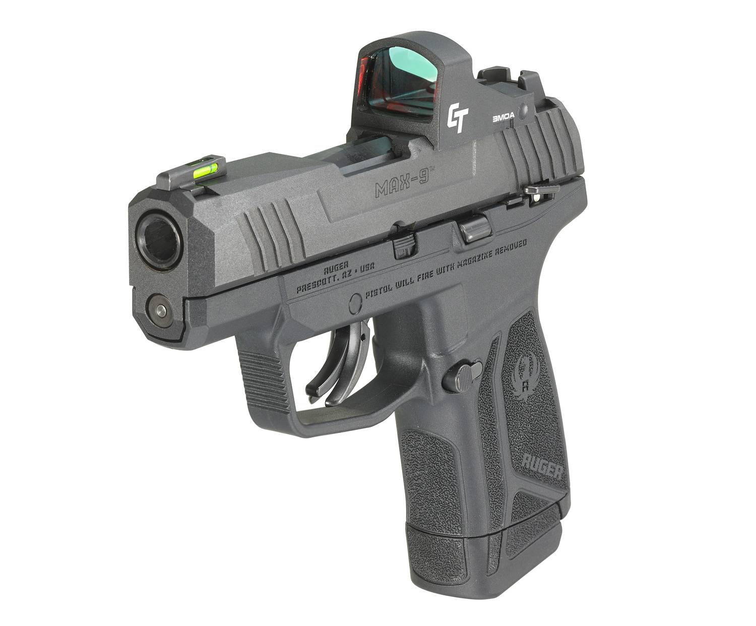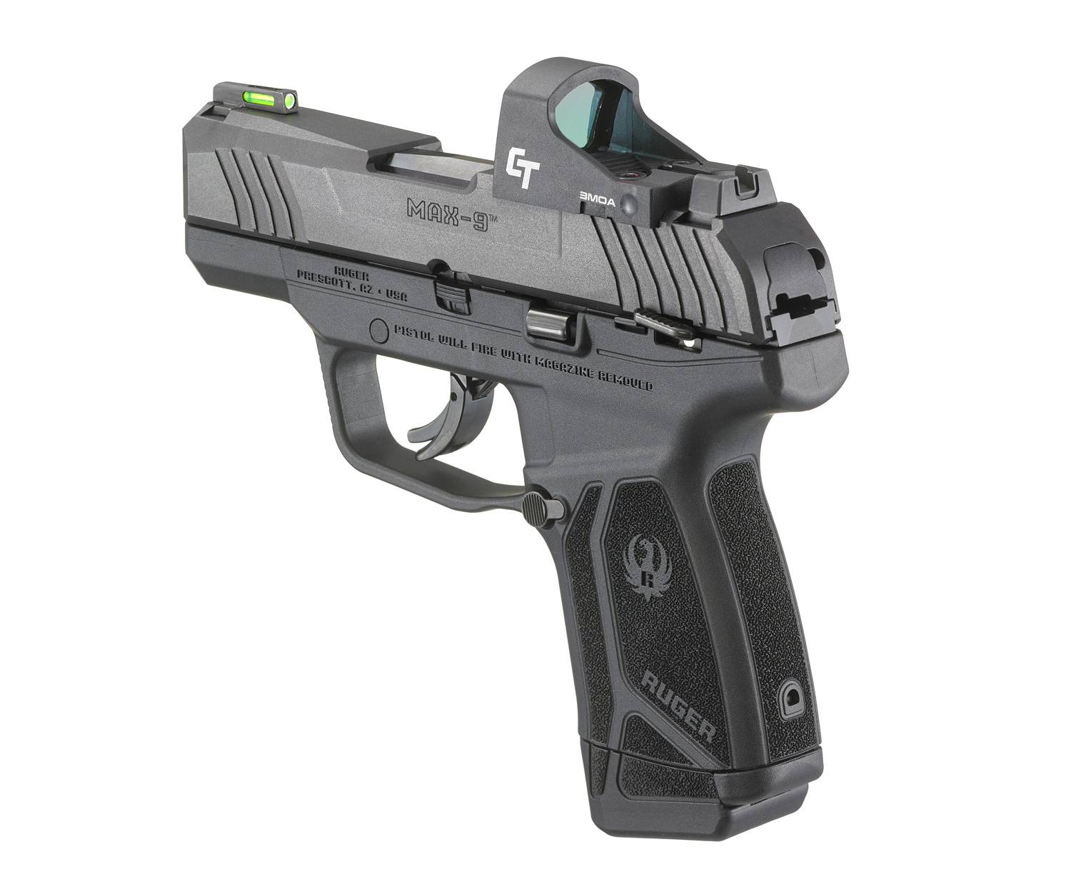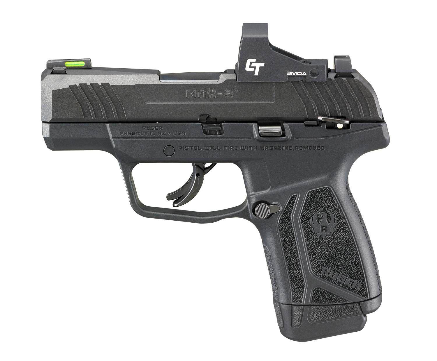 The Ruger Max-9 9mm 3.1in Barrel 12+1 Round Capacity is a robust and reliable semi-automatic pistol from one of the most trusted names in firearms. Its lightweight, compact design makes it easy to carry and conceal while providing superior accuracy, thanks to its 3.1" barrel.
