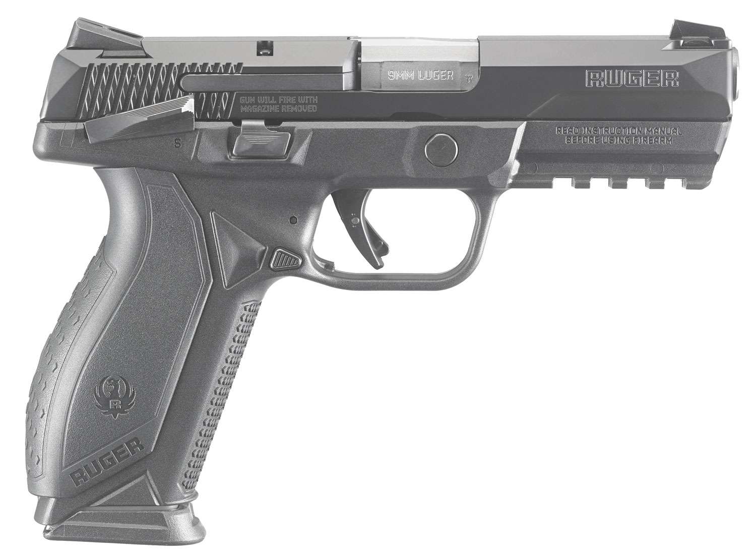 The Ruger American Duty Pistol is a recoil-reducing powerhouse. With a recoil-reducing barrel cam, low-mass slide, low center of gravity and low bore axis, plus the functional slide serrations and textured grip, the shooter has more control. The American Pistol features a modular ergonomic wraparound grip, in medium and large palmswells, and gives the shooter the ability to customize the grip. The pre-tensioned striker system features a powerful striker spring for positive ignition without a heavier trigger pull. It has an ambidextrous slide stop and magazine release making it great for both right and left handed shooters, Novak LoMount carry three-dot sights, and Picatinny rail under the barrel for accessories. Safety features include internal automatic sear block system, trigger safety, external manual safety and inspection port. It includes two 10 round nickel-Teflon plated steel magazines.