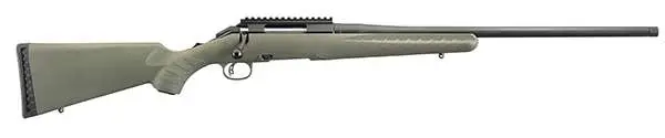 Ruger's American Rifle offers minute-of-angle accuracy that can make every hunt a success. The one-piece, three-lug bolt with 70 degree throw provides ample scope clearance and utilizes a full diameter bolt body and dual cocking cams for smooth, easy cycling. Its patent-pending Power Bedding, integral bedding block system positively locates the receiver and free-floats the cold hammer-forged barrel for outstanding accuracy. The ergonomic, lightweight synthetic stock with soft rubber buttpad is designed for quick, easy handling and blends a classic look with modern forend contouring and grip serrations. The American Rifle also has a Ruger Marksman adjustable trigger and a tang safety. The Predator model features a heavy tapered, threaded barrel and an one-piece aluminum scope rail. This 6.5 Creedmoor model has a moss green synthetic stock.