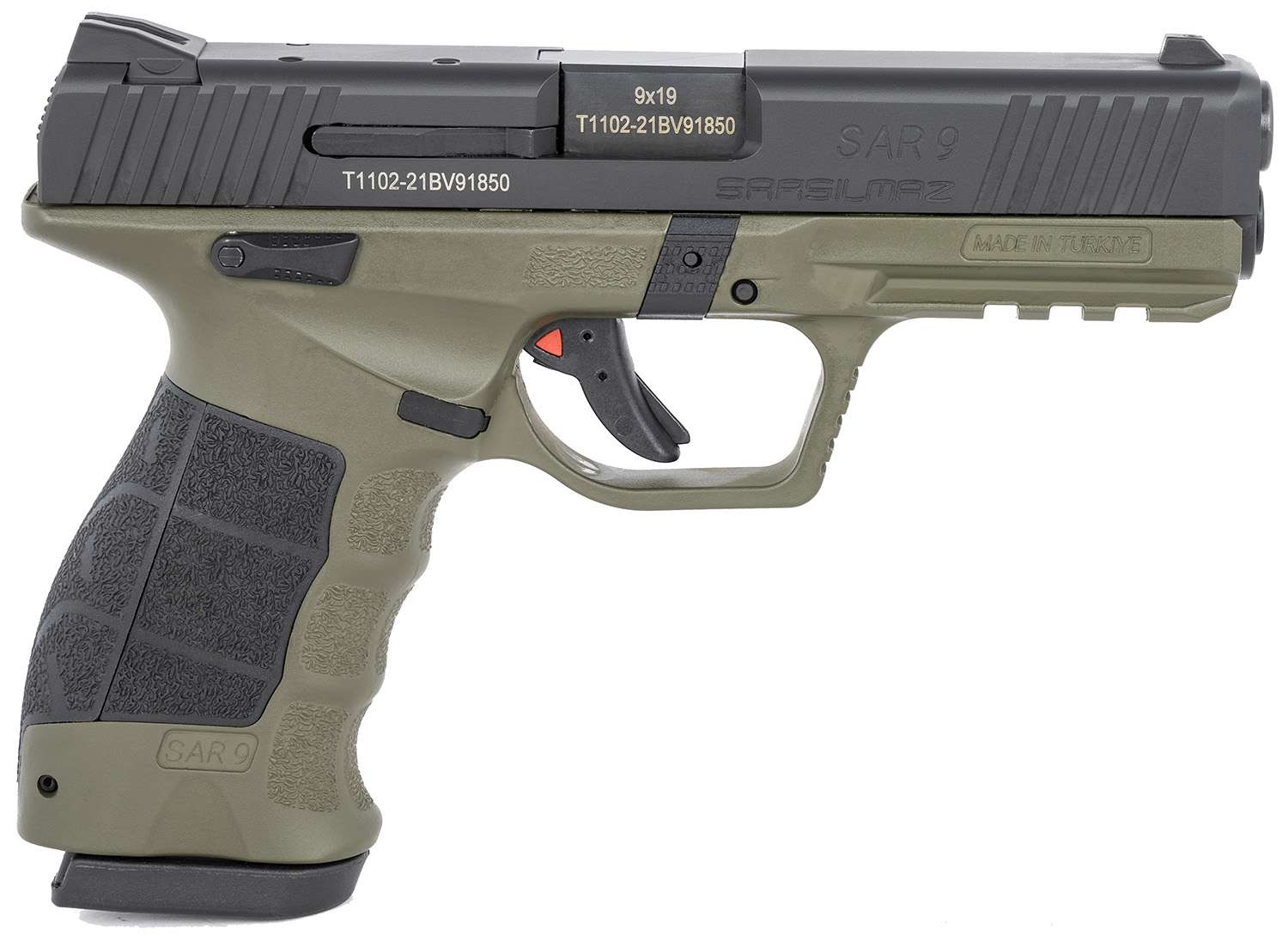 SAR USA SAR9, Striker Fired, Semi-automatic, Polymer Frame Pistol, Full Size, 9MM, 4.4" Barrel, Black Slide, OD Green Frame, 3 Dot Sights, 17 Rounds, 2 Magazines SAR9ODBL